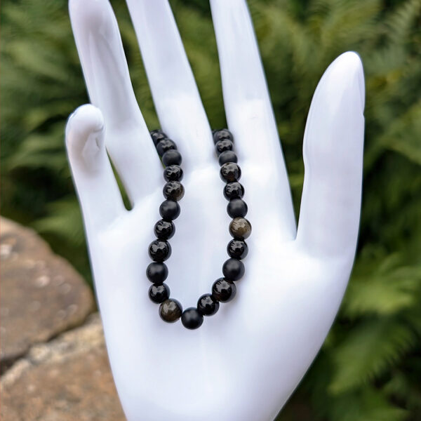 Bracelet en pierres naturelle de Tourmaline noire, Obsidienne dorée et Agate noire (perles de 6mm de diamètre).